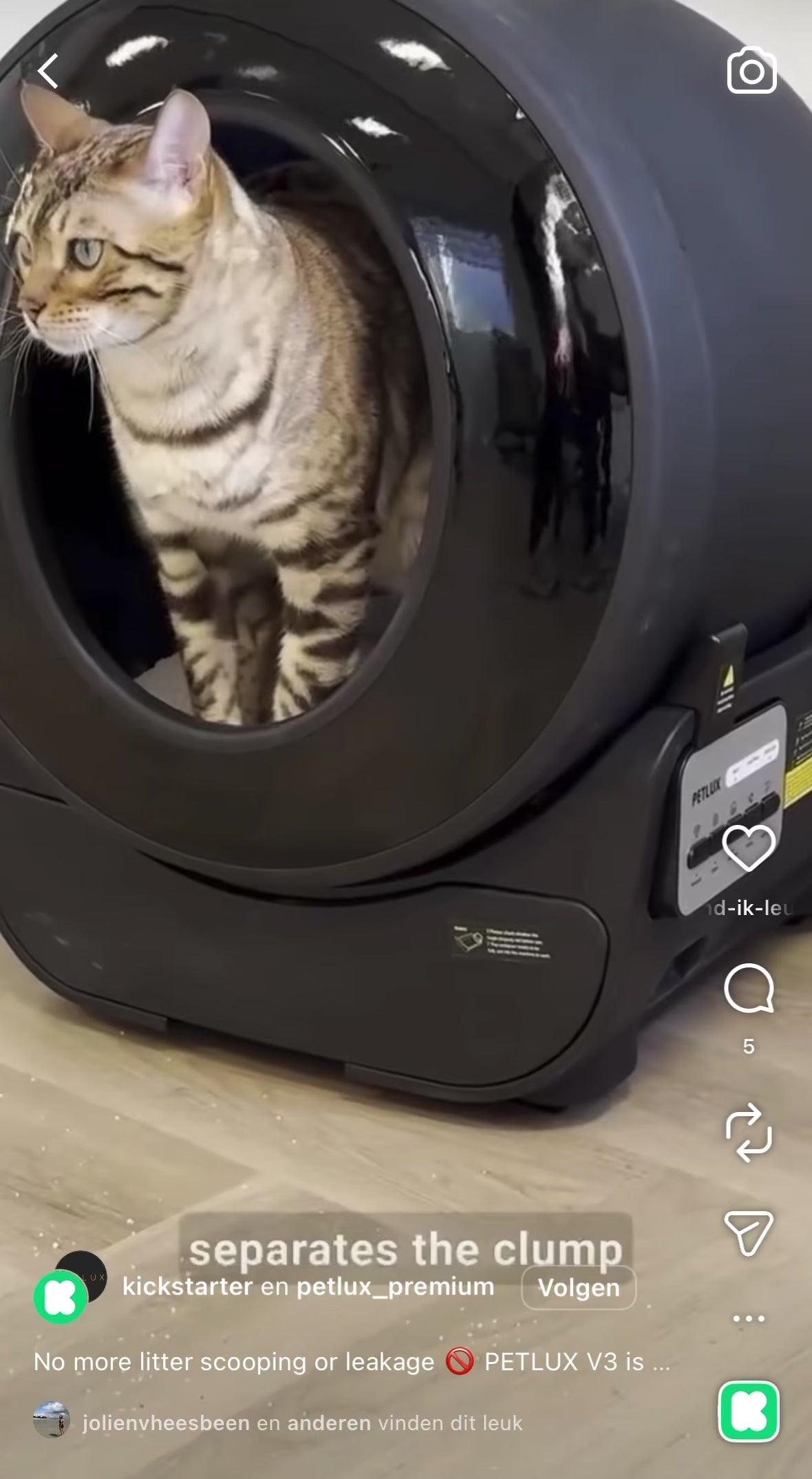 Deze automatische kattenbak is de grootste op de markt (100L), waardoor hij geschikt is voor katten zoals de Maine Coon, Pers, Noorse Boskat, Ragdoll en meer.